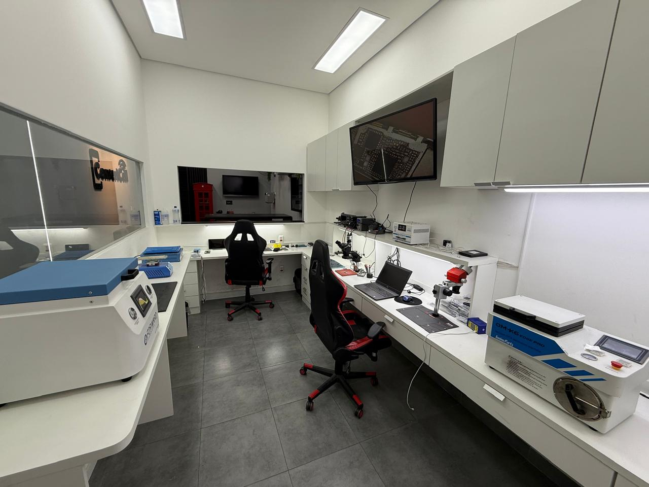 Na nova unidade, unimos nossa essência a uma estrutura de ponta. Criamos um diferencial único na região: o nosso laboratório aberto. Uma parede de vidro que quebrou a barreira entre o cliente e o técnico. Aqui, você pode acompanhar cada etapa do reparo e ter a certeza de que seu aparelho está em boas mãos. Foi nesse momento que passamos a oferecer soluções que, muitas vezes, nem as assistências autorizadas proporcionam: a agilidade de um reparo expresso, com muitos serviços concluídos em menos de 40 minutos, e um atendimento próximo e humano, que realmente entende a urgência de cada cliente. Essa transparência, somada a parcerias com os melhores fornecedores de peças, nos consolidou.